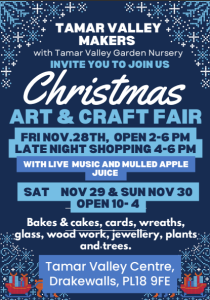 Join Tamar Valley Makers and Tamar Valley Garden Nursery for their Christmas Art and Craft Fair. There promises to be baked goods and cakes, handmade wreaths, glass works, wood work and jewellery, as well as plants and trees.